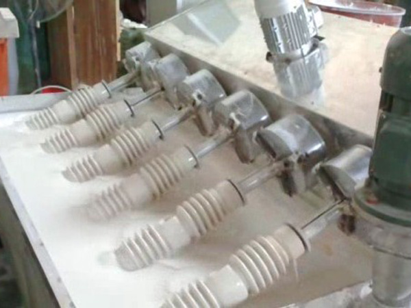 The rod insulator auto glazing machine is mainly suitable for electric porcelain production enterprises. The automatic electric porcelain dipping machine is mainly composed of an automatic blank clamping manipulator, a vertical reversal mechanism, a rotation mechanism, a glaze circulation sieving and magnetic mechanism, a PLC control, and a liquid crystal display. The equipment achieves accurate and consistent glaze soaking and drying time through automatic control, so that the product glaze layer is uniform, the color is consistent, and there are no glaze drops and glaze holes. The equipment has stable performance and simple operation, and unskilled workers can directly operate on duty.